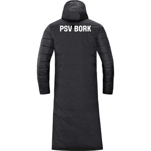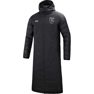 Langer, wattierter Bankmantel mit wasserabweisender PU-Beschichtung – ideal für kalte Spieltage & Pausen am Spielfeldrand.
